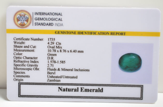 Beautiful 4.29 Cts Natural Emerald (AAA+-Mines) sva 4+ Ratti EMERALD. Free Horoscope & Free Pundit Ji Astrological Advise / Consultation. Original Natural Lab certified gems by IGI GTL / Birth stones / Large Gem Selection of shree shubh Rashi Ratan Vedic dhan at Gem Mines. May Bhagwan Brahma, Vishnu, Shiv & Universe bless you.