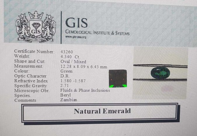 Beautiful 4.34 Ct. Emerald (Zambian Mines) Sava 4 Ratti Panna. Free Horoscope & Free Pundit Ji Advise / Consultation. Original Natural Lab certified gems by IGI GTL / Birth stones / Large Gem Selection of shree shubh Rashi Ratan Vedic dhan at Gem Mines. May Bhagwan Brahma, Vishnu, Shiv & Universe bless you.