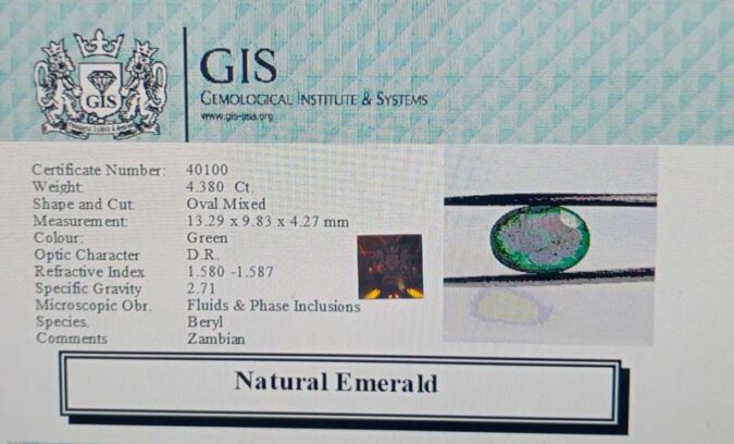 Beautiful 4.38 Ct. Emerald (Zambian Mines) Sava 4 Ratti Panna. Free Horoscope & Free Pundit Ji Advise / Consultation. Original Natural Lab certified gems by IGI GTL / Birth stones / Large Gem Selection of shree shubh Rashi Ratan Vedic dhan at Gem Mines. May Bhagwan Brahma, Vishnu, Shiv & Universe bless you.
