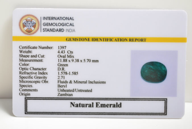 Beautiful 4.43 Cts Natural Emerald (AAA+-Mines) sva 4+ Ratti EMERALD. Free Horoscope & Free Pundit Ji Astrological Advise / Consultation. Original Natural Lab certified gems by IGI GTL / Birth stones / Large Gem Selection of shree shubh Rashi Ratan Vedic dhan at Gem Mines. May Bhagwan Brahma, Vishnu, Shiv & Universe bless you.
