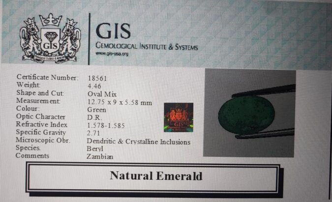 Beautiful 4.46 Ct. Emerald (Zambian Mines) Sava 4 Ratti Panna. Free Horoscope & Free Pundit Ji Advise / Consultation. Original Natural Lab certified gems by IGI GTL / Birth stones / Large Gem Selection of shree shubh Rashi Ratan Vedic dhan at Gem Mines. May Bhagwan Brahma, Vishnu, Shiv & Universe bless you.