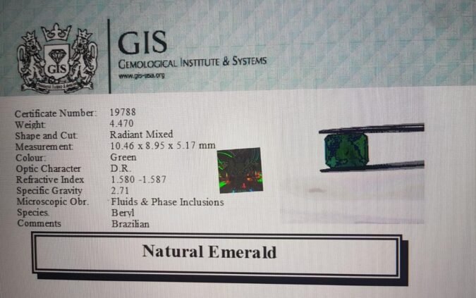 Beautiful 4.47 Ct. Emerald (Brazilian Mines) Sava 4 Ratti Panna. Free Horoscope & Free Pundit Ji Advise / Consultation. Original Natural Lab certified gems by IGI GTL / Birth stones / Large Gem Selection of shree shubh Rashi Ratan Vedic dhan at Gem Mines. May Bhagwan Brahma, Vishnu, Shiv & Universe bless you.