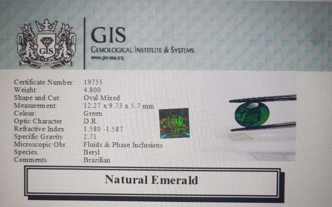 Beautiful 4.8 Ct. Emerald (Brazilian Mines) Sava 5 Ratti Panna. Free Horoscope & Free Pundit Ji Advise / Consultation. Original Natural Lab certified gems by IGI GTL / Birth stones / Large Gem Selection of shree shubh Rashi Ratan Vedic dhan at Gem Mines. May Bhagwan Brahma, Vishnu, Shiv & Universe bless you.
