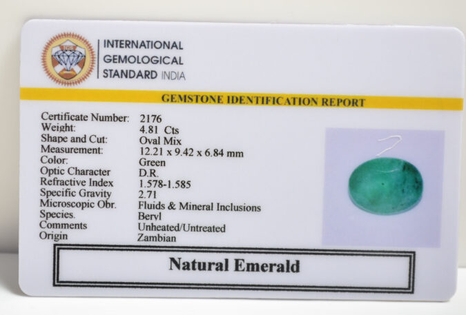 Beautiful 4.81 Cts Natural Emerald (AAA+-Mines) sva 5+ Ratti EMERALD. Free Horoscope & Free Pundit Ji Astrological Advise / Consultation. Original Natural Lab certified gems by IGI GTL / Birth stones / Large Gem Selection of shree shubh Rashi Ratan Vedic dhan at Gem Mines. May Bhagwan Brahma, Vishnu, Shiv & Universe bless you.