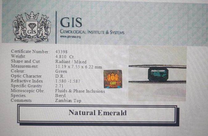 Beautiful 4.81 Ct. Emerald (Zambian Mines) Sava 5 Ratti Panna. Free Horoscope & Free Pundit Ji Advise / Consultation. Original Natural Lab certified gems by IGI GTL / Birth stones / Large Gem Selection of shree shubh Rashi Ratan Vedic dhan at Gem Mines. May Bhagwan Brahma, Vishnu, Shiv & Universe bless you.