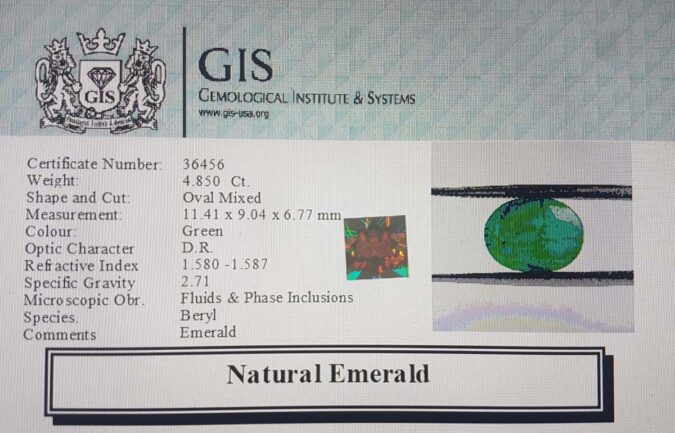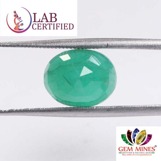 Beautiful 4.85 Ct. Emerald (Emerald Mines) Sava 5 Ratti Panna. Free Horoscope & Free Pundit Ji Advise / Consultation. Original Natural Lab certified gems by IGI GTL / Birth stones / Large Gem Selection of shree shubh Rashi Ratan Vedic dhan at Gem Mines. May Bhagwan Brahma, Vishnu, Shiv & Universe bless you.