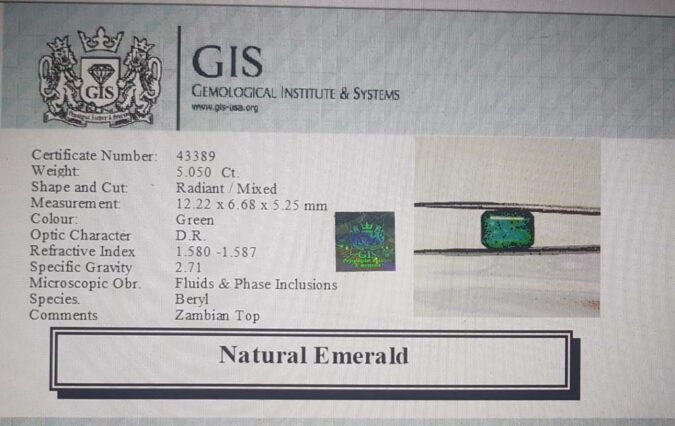 Beautiful 5.05 Ct. Emerald (Zambian Mines) Sava 5 Ratti Panna. Free Horoscope & Free Pundit Ji Advise / Consultation. Original Natural Lab certified gems by IGI GTL / Birth stones / Large Gem Selection of shree shubh Rashi Ratan Vedic dhan at Gem Mines. May Bhagwan Brahma, Vishnu, Shiv & Universe bless you.