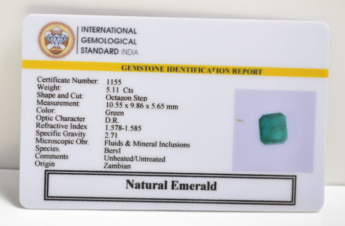 Beautiful 5.11 Cts Natural Emerald (AAA+Mines) sva 5 Ratti EMERALD. Free Horoscope & Free Pundit Ji Astrological Advise / Consultation. Original Natural Lab certified gems by IGI GTL / Birth stones / Large Gem Selection of shree shubh Rashi Ratan Vedic dhan at Gem Mines. May Bhagwan Brahma, Vishnu, Shiv & Universe bless you.