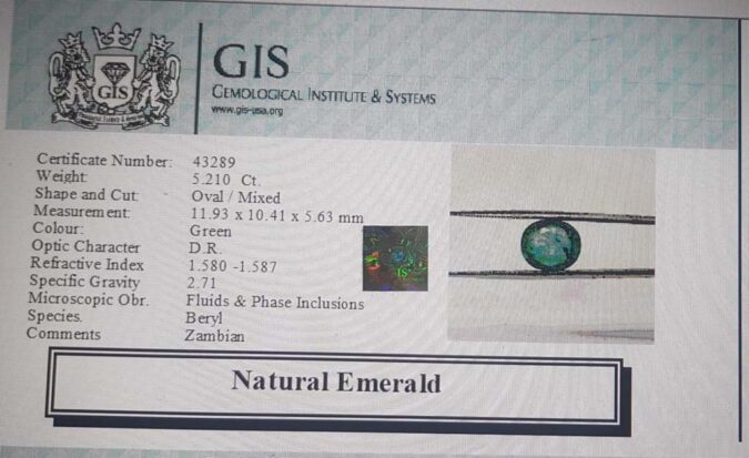 Beautiful 5.21 Ct. Emerald (Zambian Mines) Sava 5 Ratti Panna. Free Horoscope & Free Pundit Ji Advise / Consultation. Original Natural Lab certified gems by IGI GTL / Birth stones / Large Gem Selection of shree shubh Rashi Ratan Vedic dhan at Gem Mines. May Bhagwan Brahma, Vishnu, Shiv & Universe bless you.