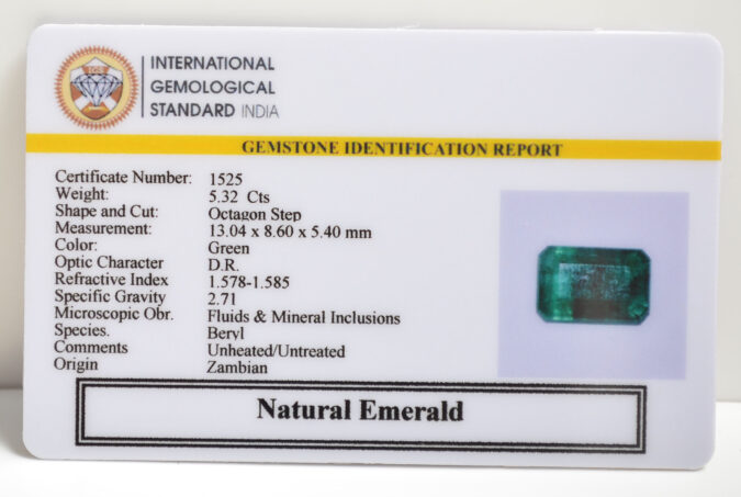 Beautiful 5.32 Cts Natural Emerald (AAA-Mines) sva 5+ Ratti EMERALD. Free Horoscope & Free Pundit Ji Astrological Advise / Consultation. Original Natural Lab certified gems by IGI GTL / Birth stones / Large Gem Selection of shree shubh Rashi Ratan Vedic dhan at Gem Mines. May Bhagwan Brahma, Vishnu, Shiv & Universe bless you.