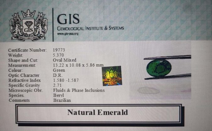 Beautiful 5.37 Ct. Emerald (Brazilian Mines) Sava 5 Ratti Panna. Free Horoscope & Free Pundit Ji Advise / Consultation. Original Natural Lab certified gems by IGI GTL / Birth stones / Large Gem Selection of shree shubh Rashi Ratan Vedic dhan at Gem Mines. May Bhagwan Brahma, Vishnu, Shiv & Universe bless you.