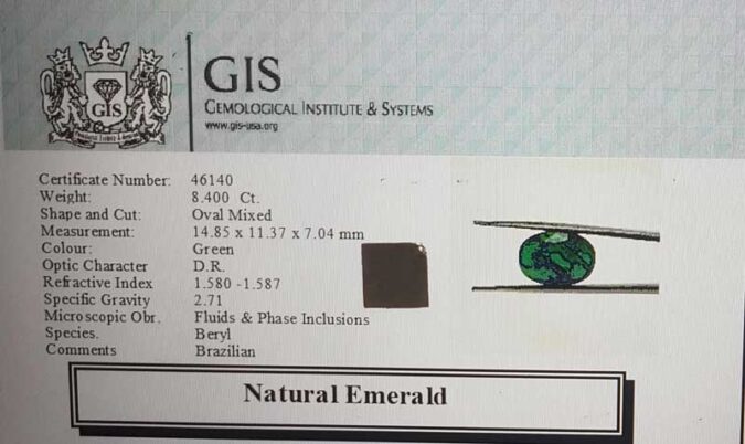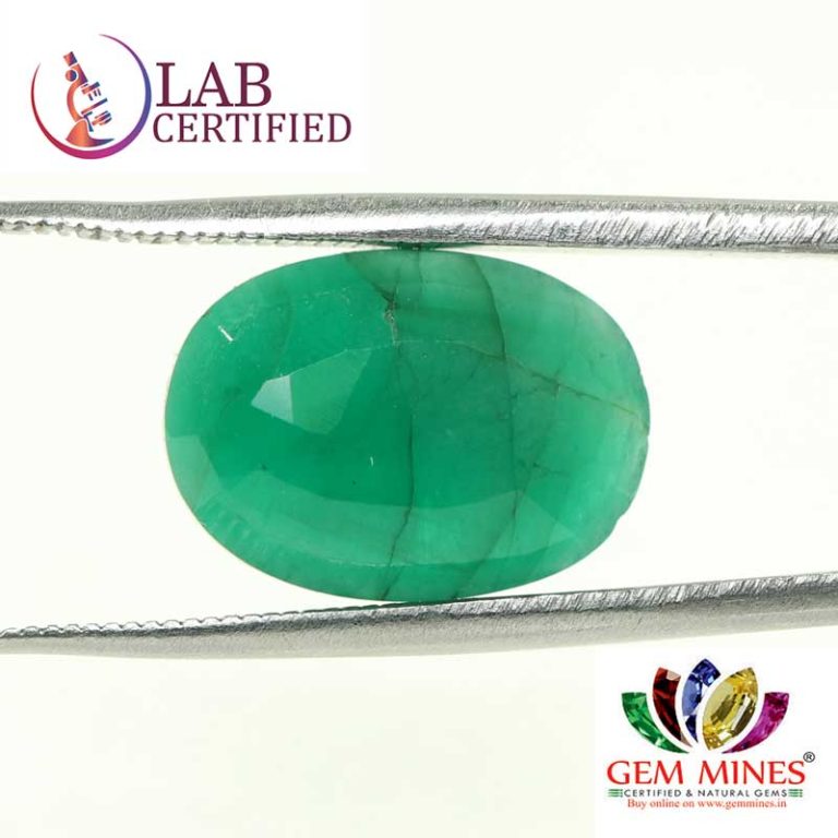 Beautiful 5.4 Ct. Emerald (Brazilian Mines) Sava 5 Ratti Panna. Free Horoscope & Free Pundit Ji Advise / Consultation. Original Natural Lab certified gems by IGI GTL / Birth stones / Large Gem Selection of shree shubh Rashi Ratan Vedic dhan at Gem Mines. May Bhagwan Brahma, Vishnu, Shiv & Universe bless you.