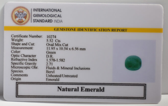 Certified Natural Emerald 5.52 Ct.(6+ Ratti) in Oval Mix Cut shape