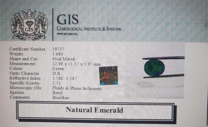 Beautiful 5.68 Ct. Emerald (Brazilian Mines) Sava 6 Ratti Panna. Free Horoscope & Free Pundit Ji Advise / Consultation. Original Natural Lab certified gems by IGI GTL / Birth stones / Large Gem Selection of shree shubh Rashi Ratan Vedic dhan at Gem Mines. May Bhagwan Brahma, Vishnu, Shiv & Universe bless you.