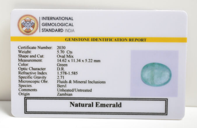Beautiful 5.7 Cts Natural Emerald (AAA+-Mines) sva 6+ Ratti EMERALD. Free Horoscope & Free Pundit Ji Astrological Advise / Consultation. Original Natural Lab certified gems by IGI GTL / Birth stones / Large Gem Selection of shree shubh Rashi Ratan Vedic dhan at Gem Mines. May Bhagwan Brahma, Vishnu, Shiv & Universe bless you.