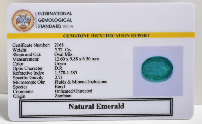 Beautiful 5.72 Cts Natural Emerald (AAA+-Mines) sva 6+ Ratti EMERALD. Free Horoscope & Free Pundit Ji Astrological Advise / Consultation. Original Natural Lab certified gems by IGI GTL / Birth stones / Large Gem Selection of shree shubh Rashi Ratan Vedic dhan at Gem Mines. May Bhagwan Brahma, Vishnu, Shiv & Universe bless you.