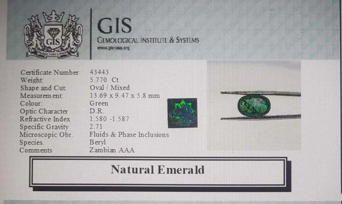 Beautiful 5.77 Ct. Emerald (Zambian Mines) Sava 6 Ratti Panna. Free Horoscope & Free Pundit Ji Advise / Consultation. Original Natural Lab certified gems by IGI GTL / Birth stones / Large Gem Selection of shree shubh Rashi Ratan Vedic dhan at Gem Mines. May Bhagwan Brahma, Vishnu, Shiv & Universe bless you.