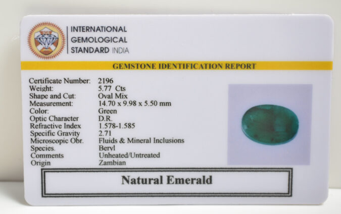 Beautiful 5.77 Cts Natural Emerald (AAA-Mines) sva 6+ Ratti EMERALD. Free Horoscope & Free Pundit Ji Astrological Advise / Consultation. Original Natural Lab certified gems by IGI GTL / Birth stones / Large Gem Selection of shree shubh Rashi Ratan Vedic dhan at Gem Mines. May Bhagwan Brahma, Vishnu, Shiv & Universe bless you.
