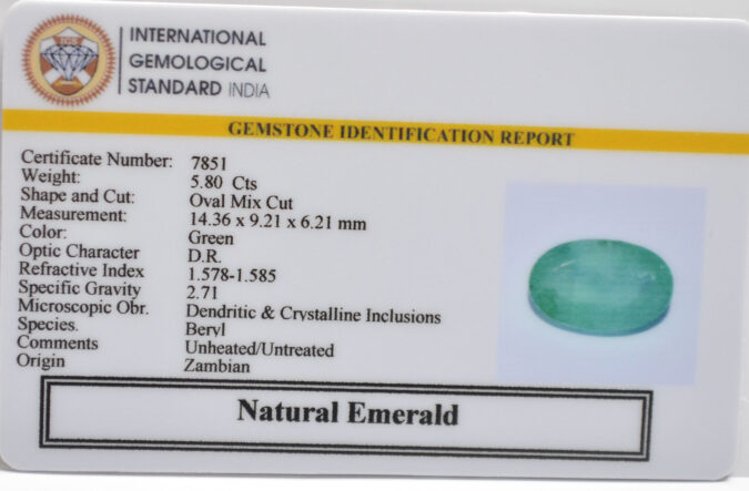 Beautiful 5.8 Cts Natural Emerald (Top+-Mines) sva 6+ Ratti EMERALD. Free Horoscope & Free Pundit Ji Astrological Advise / Consultation. Original Natural Lab certified gems by IGI GTL / Birth stones / Large Gem Selection of shree shubh Rashi Ratan Vedic dhan at Gem Mines. May Bhagwan Brahma, Vishnu, Shiv & Universe bless you.