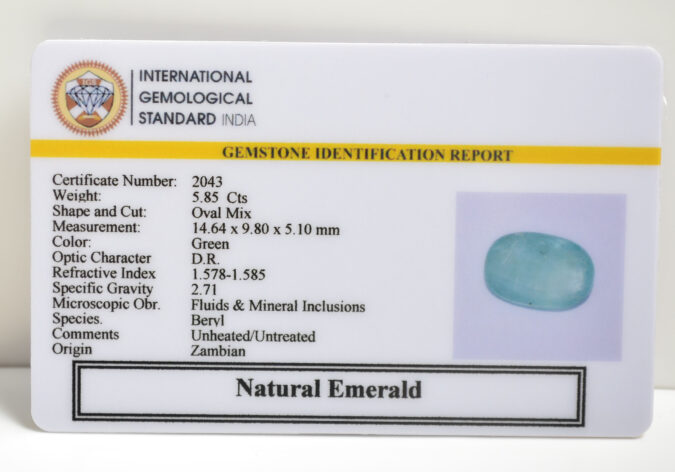 Beautiful 5.85 Cts Natural Emerald (AAA+-Mines) sva 6+ Ratti EMERALD. Free Horoscope & Free Pundit Ji Astrological Advise / Consultation. Original Natural Lab certified gems by IGI GTL / Birth stones / Large Gem Selection of shree shubh Rashi Ratan Vedic dhan at Gem Mines. May Bhagwan Brahma, Vishnu, Shiv & Universe bless you.