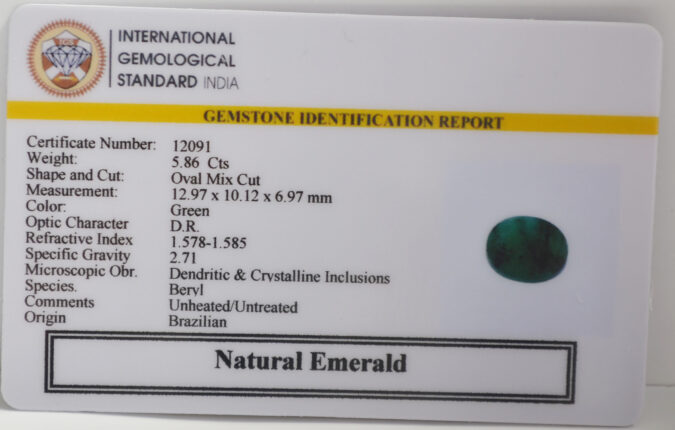 Certified Natural Emerald 5.86 Ct.(6+ Ratti) in Oval Mix Cut shape