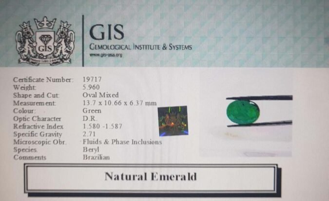 Beautiful 5.96 Ct. Emerald (Brazilian Mines) Sava 6 Ratti Panna. Free Horoscope & Free Pundit Ji Advise / Consultation. Original Natural Lab certified gems by IGI GTL / Birth stones / Large Gem Selection of shree shubh Rashi Ratan Vedic dhan at Gem Mines. May Bhagwan Brahma, Vishnu, Shiv & Universe bless you.