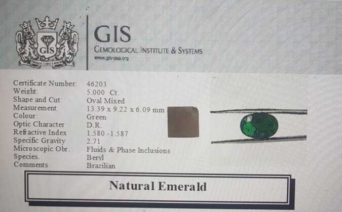 Beautiful 5 Ct. Emerald (Brazilian Mines) Sava 5 Ratti Panna. Free Horoscope & Free Pundit Ji Advise / Consultation. Original Natural Lab certified gems by IGI GTL / Birth stones / Large Gem Selection of shree shubh Rashi Ratan Vedic dhan at Gem Mines. May Bhagwan Brahma, Vishnu, Shiv & Universe bless you.