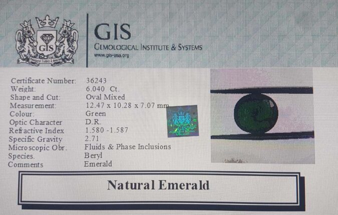 Beautiful 6.04 Ct. Emerald (Emerald Mines) Sava 6 Ratti Panna. Free Horoscope & Free Pundit Ji Advise / Consultation. Original Natural Lab certified gems by IGI GTL / Birth stones / Large Gem Selection of shree shubh Rashi Ratan Vedic dhan at Gem Mines. May Bhagwan Brahma, Vishnu, Shiv & Universe bless you.