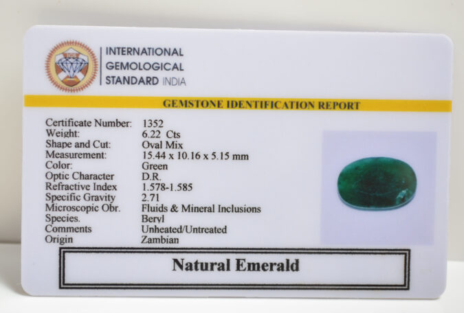 Beautiful 6.22 Cts Natural Emerald (AAA+-Mines) sva 6+ Ratti EMERALD. Free Horoscope & Free Pundit Ji Astrological Advise / Consultation. Original Natural Lab certified gems by IGI GTL / Birth stones / Large Gem Selection of shree shubh Rashi Ratan Vedic dhan at Gem Mines. May Bhagwan Brahma, Vishnu, Shiv & Universe bless you.