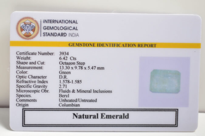 Beautiful 6.42 Cts Natural Emerald (AAA+-Mines) sva 7+ Ratti EMERALD. Free Horoscope & Free Pundit Ji Astrological Advise / Consultation. Original Natural Lab certified gems by IGI GTL / Birth stones / Large Gem Selection of shree shubh Rashi Ratan Vedic dhan at Gem Mines. May Bhagwan Brahma, Vishnu, Shiv & Universe bless you.