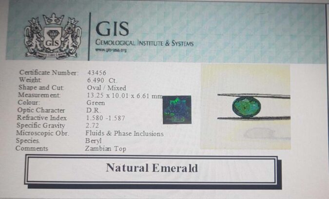 Beautiful 6.49 Ct. Emerald (Zambian Mines) Sava 7 Ratti Panna. Free Horoscope & Free Pundit Ji Advise / Consultation. Original Natural Lab certified gems by IGI GTL / Birth stones / Large Gem Selection of shree shubh Rashi Ratan Vedic dhan at Gem Mines. May Bhagwan Brahma, Vishnu, Shiv & Universe bless you.