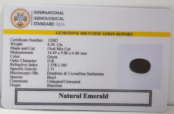Beautiful 6.5 Cts Natural Emerald (Very Good-Mines) sva 7+ Ratti EMERALD. Free Horoscope & Free Pundit Ji Astrological Advise / Consultation. Original Natural Lab certified gems by IGI GTL / Birth stones / Large Gem Selection of shree shubh Rashi Ratan Vedic dhan at Gem Mines. May Bhagwan Brahma, Vishnu, Shiv & Universe bless you.