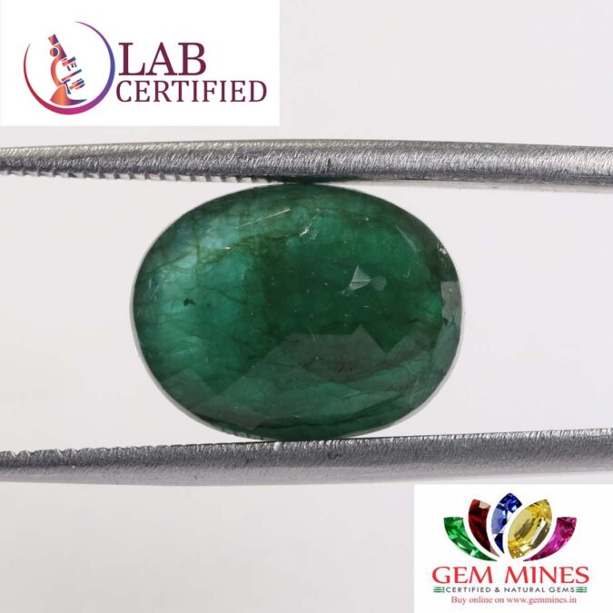 Beautiful 6.55 Ct. Emerald (Emerald Mines) Sava 7 Ratti Panna. Free Horoscope & Free Pundit Ji Advise / Consultation. Original Natural Lab certified gems by IGI GTL / Birth stones / Large Gem Selection of shree shubh Rashi Ratan Vedic dhan at Gem Mines. May Bhagwan Brahma, Vishnu, Shiv & Universe bless you.