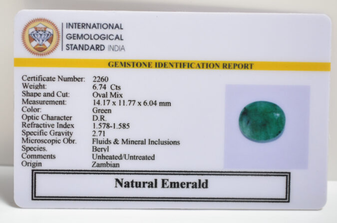 Beautiful 6.74 Cts Natural Emerald (Very Good-Mines) sva 7+ Ratti EMERALD. Free Horoscope & Free Pundit Ji Astrological Advise / Consultation. Original Natural Lab certified gems by IGI GTL / Birth stones / Large Gem Selection of shree shubh Rashi Ratan Vedic dhan at Gem Mines. May Bhagwan Brahma, Vishnu, Shiv & Universe bless you.