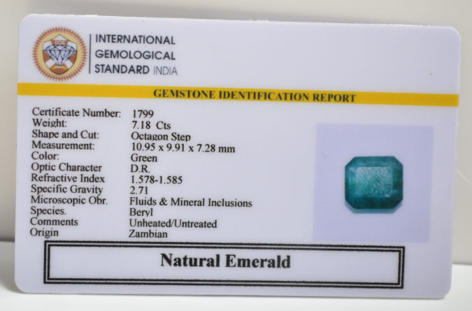 Beautiful 7.18 Cts Natural Emerald (AAA+-Mines) sva 7+ Ratti EMERALD. Free Horoscope & Free Pundit Ji Astrological Advise / Consultation. Original Natural Lab certified gems by IGI GTL / Birth stones / Large Gem Selection of shree shubh Rashi Ratan Vedic dhan at Gem Mines. May Bhagwan Brahma, Vishnu, Shiv & Universe bless you.