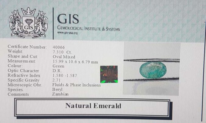 Beautiful 7.31 Ct. Emerald (Zambian Mines) Sava 8 Ratti Panna. Free Horoscope & Free Pundit Ji Advise / Consultation. Original Natural Lab certified gems by IGI GTL / Birth stones / Large Gem Selection of shree shubh Rashi Ratan Vedic dhan at Gem Mines. May Bhagwan Brahma, Vishnu, Shiv & Universe bless you.