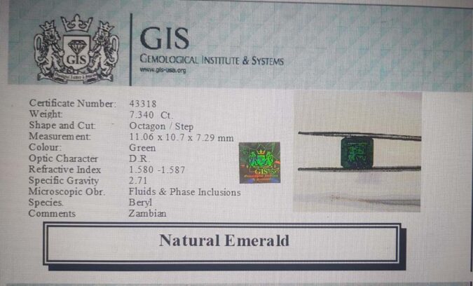 Beautiful 7.34 Ct. Emerald (Zambian Mines) Sava 8 Ratti Panna. Free Horoscope & Free Pundit Ji Advise / Consultation. Original Natural Lab certified gems by IGI GTL / Birth stones / Large Gem Selection of shree shubh Rashi Ratan Vedic dhan at Gem Mines. May Bhagwan Brahma, Vishnu, Shiv & Universe bless you.