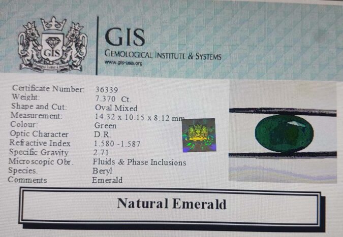 Beautiful 7.37 Ct. Emerald (Emerald Mines) Sava 8 Ratti Panna. Free Horoscope & Free Pundit Ji Advise / Consultation. Original Natural Lab certified gems by IGI GTL / Birth stones / Large Gem Selection of shree shubh Rashi Ratan Vedic dhan at Gem Mines. May Bhagwan Brahma, Vishnu, Shiv & Universe bless you.