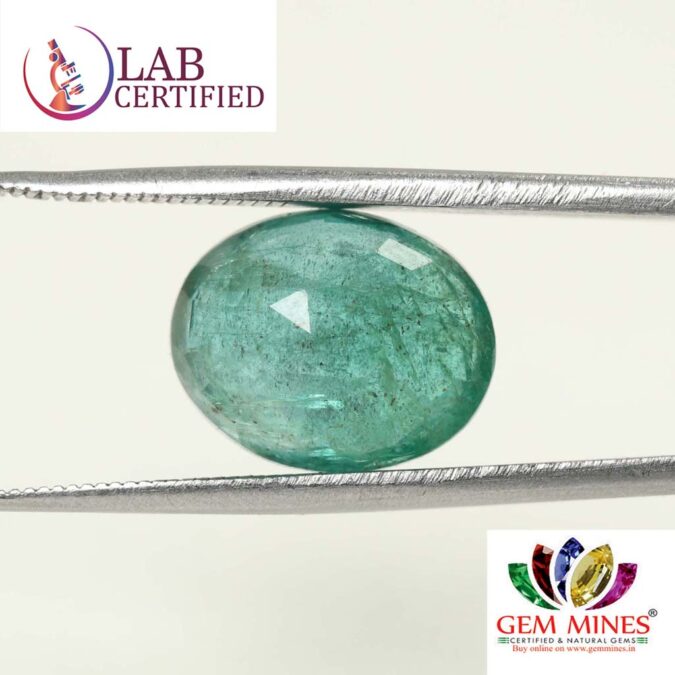 Beautiful 7.39 Ct. Emerald (Zambian Mines) Sava 8 Ratti Panna. Free Horoscope & Free Pundit Ji Advise / Consultation. Original Natural Lab certified gems by IGI GTL / Birth stones / Large Gem Selection of shree shubh Rashi Ratan Vedic dhan at Gem Mines. May Bhagwan Brahma, Vishnu, Shiv & Universe bless you.
