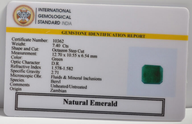 Beautiful 7.4 Cts Natural Emerald (AAA-Mines) sva 8+ Ratti EMERALD. Free Horoscope & Free Pundit Ji Astrological Advise / Consultation. Original Natural Lab certified gems by IGI GTL / Birth stones / Large Gem Selection of shree shubh Rashi Ratan Vedic dhan at Gem Mines. May Bhagwan Brahma, Vishnu, Shiv & Universe bless you.