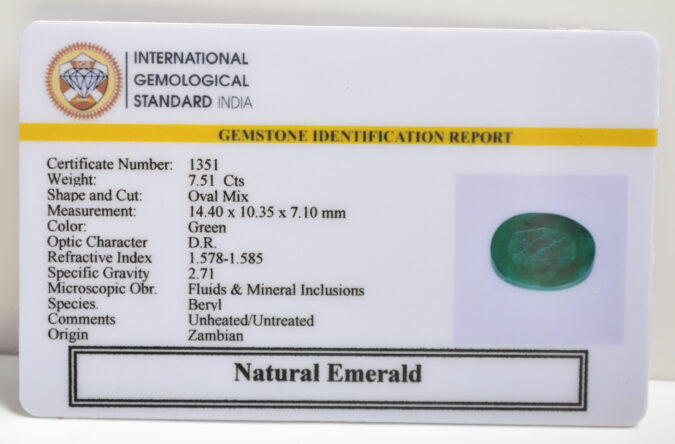 Beautiful 7.51 Cts Natural Emerald (AAA+-Mines) sva 8+ Ratti EMERALD. Free Horoscope & Free Pundit Ji Astrological Advise / Consultation. Original Natural Lab certified gems by IGI GTL / Birth stones / Large Gem Selection of shree shubh Rashi Ratan Vedic dhan at Gem Mines. May Bhagwan Brahma, Vishnu, Shiv & Universe bless you.