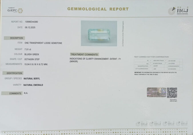 Beautiful 7.51 Cts Natural Emerald (AAA+-Mines) sva 8+ Ratti EMERALD. Free Horoscope & Free Pundit Ji Astrological Advise / Consultation. Original Natural Lab certified gems by IGI GTL / Birth stones / Large Gem Selection of shree shubh Rashi Ratan Vedic dhan at Gem Mines. May Bhagwan Brahma, Vishnu, Shiv & Universe bless you.