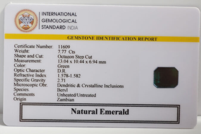 Beautiful 7.77 Cts Natural Emerald (AAA-Mines) sva 8+ Ratti EMERALD. Free Horoscope & Free Pundit Ji Astrological Advise / Consultation. Original Natural Lab certified gems by IGI GTL / Birth stones / Large Gem Selection of shree shubh Rashi Ratan Vedic dhan at Gem Mines. May Bhagwan Brahma, Vishnu, Shiv & Universe bless you.
