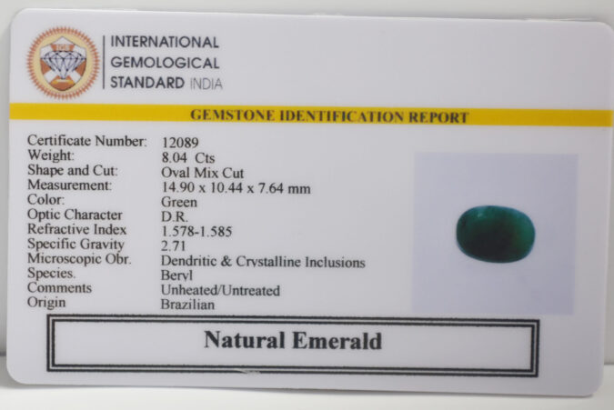 Beautiful 8.04 Cts Natural Emerald (AAA-Mines) sva 8+ Ratti EMERALD. Free Horoscope & Free Pundit Ji Astrological Advise / Consultation. Original Natural Lab certified gems by IGI GTL / Birth stones / Large Gem Selection of shree shubh Rashi Ratan Vedic dhan at Gem Mines. May Bhagwan Brahma, Vishnu, Shiv & Universe bless you.