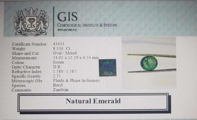 Beautiful 8.33 Ct. Emerald (Zambian Mines) Sava 9 Ratti Panna. Free Horoscope & Free Pundit Ji Advise / Consultation. Original Natural Lab certified gems by IGI GTL / Birth stones / Large Gem Selection of shree shubh Rashi Ratan Vedic dhan at Gem Mines. May Bhagwan Brahma, Vishnu, Shiv & Universe bless you.