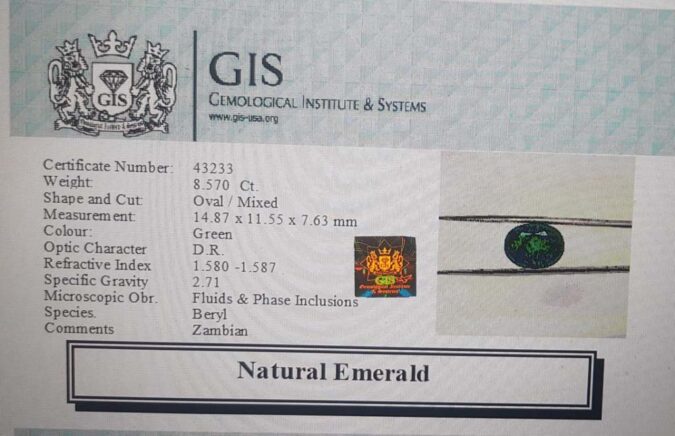 Beautiful 8.57 Ct. Emerald (Zambian Mines) Sava 9 Ratti Panna. Free Horoscope & Free Pundit Ji Advise / Consultation. Original Natural Lab certified gems by IGI GTL / Birth stones / Large Gem Selection of shree shubh Rashi Ratan Vedic dhan at Gem Mines. May Bhagwan Brahma, Vishnu, Shiv & Universe bless you.