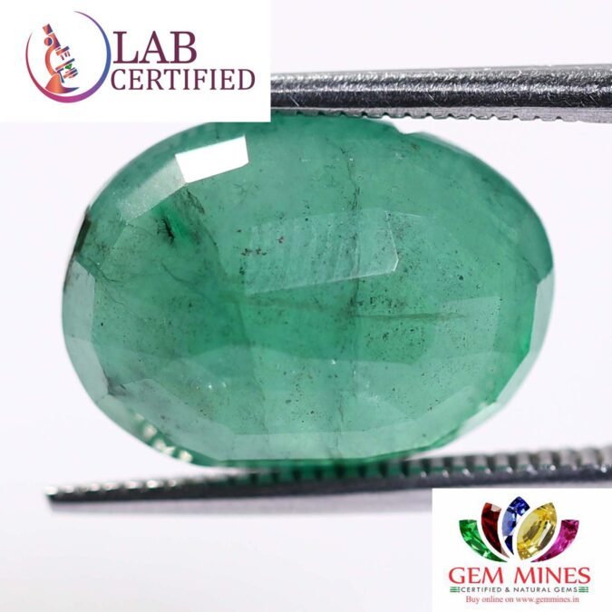 Beautiful 8.6 Ct. Emerald (Brazilian Mines) Sava 9 Ratti Panna. Free Horoscope & Free Pundit Ji Advise / Consultation. Original Natural Lab certified gems by IGI GTL / Birth stones / Large Gem Selection of shree shubh Rashi Ratan Vedic dhan at Gem Mines. May Bhagwan Brahma, Vishnu, Shiv & Universe bless you.