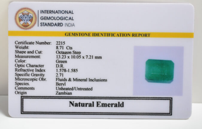 Beautiful 8.71 Cts Natural Emerald (AAA+-Mines) sva 9+ Ratti EMERALD. Free Horoscope & Free Pundit Ji Astrological Advise / Consultation. Original Natural Lab certified gems by IGI GTL / Birth stones / Large Gem Selection of shree shubh Rashi Ratan Vedic dhan at Gem Mines. May Bhagwan Brahma, Vishnu, Shiv & Universe bless you.