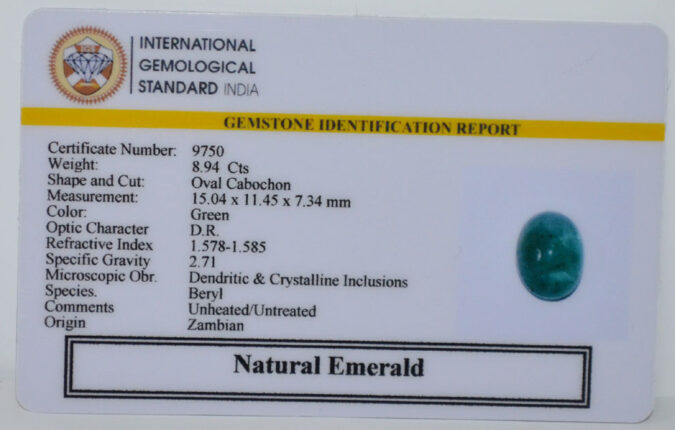 Beautiful 8.94 Cts Natural Emerald (AAA+-Mines) sva 9+ Ratti EMERALD. Free Horoscope & Free Pundit Ji Astrological Advise / Consultation. Original Natural Lab certified gems by IGI GTL / Birth stones / Large Gem Selection of shree shubh Rashi Ratan Vedic dhan at Gem Mines. May Bhagwan Brahma, Vishnu, Shiv & Universe bless you.