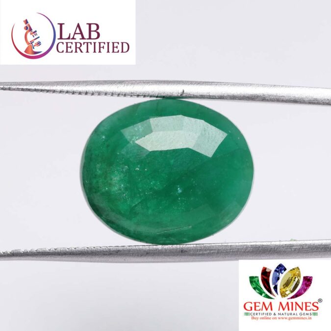 Beautiful 9.12 Ct. Emerald (Emerald Mines) Sava 10 Ratti Panna. Free Horoscope & Free Pundit Ji Advise / Consultation. Original Natural Lab certified gems by IGI GTL / Birth stones / Large Gem Selection of shree shubh Rashi Ratan Vedic dhan at Gem Mines. May Bhagwan Brahma, Vishnu, Shiv & Universe bless you.
